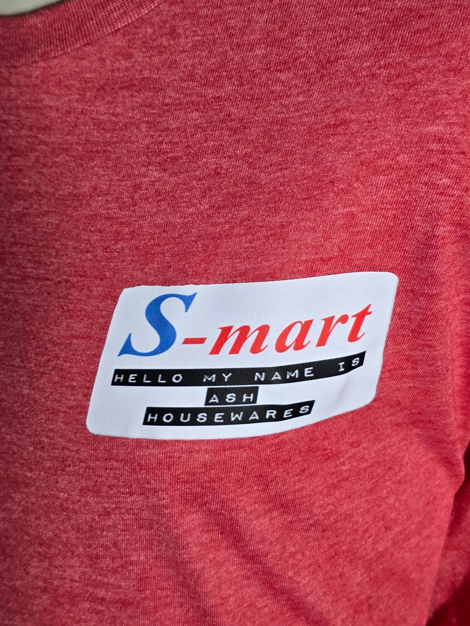 Shop smart, shop S-Mart with this Shoot First, Think Never T-Shirt featuring Ash from the Evil Dead series. Give me some sugar, baby.