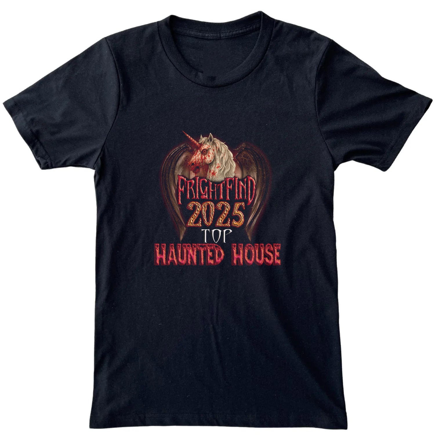 FrightFind's annual top haunted houses T-shirt. Start with FrightFind's Top Haunted Houses list and find haunted houses near you. Wear this shirt to a haunt and we're sure they'll pay special attention to scaring you throughout your stay. Stay Scary!