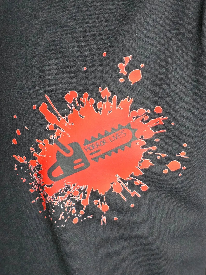 Horror legends, unite! This black-and-white tee brings together the masters of mayhem — from slashers to scream-makers — in one iconic design. A true tribute to the titans of terror.